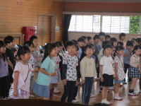1年生は、お礼に、一生懸命練習した校歌をプレゼントしました。大きな拍手をもらえて大満足の1年生!