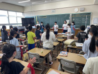 練習の進行や気を付けるところなど、不慣れなところもありますが、一生懸命下学年の子たちに教えています。下学年の人たちもそれに応えるよう元気な声で盛り上げています。