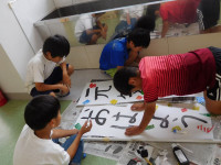 これまでは、5・6年生が中心となってあいさつの呼びかけを行ってきましたが、今回は4年生が初めて全校児童に関わって実践することになりました。まずは、これまでの上学年の取組を参考にして、内容や準備物の計画を立てました。